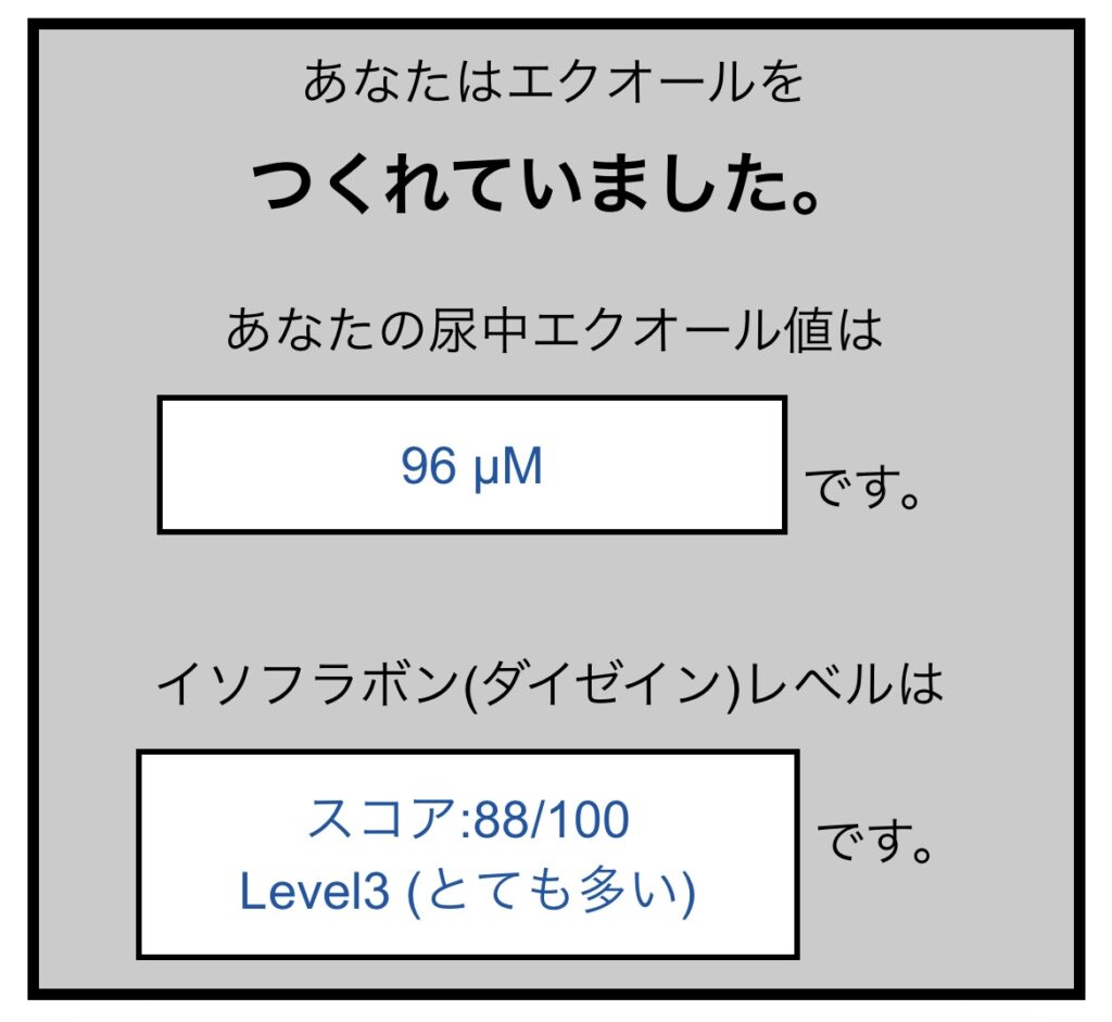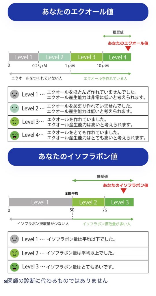 分析結果にはエクオールについて詳しく書かれてあり理解が深まりますし、結果ごとに今後のアドバイスももらえます。